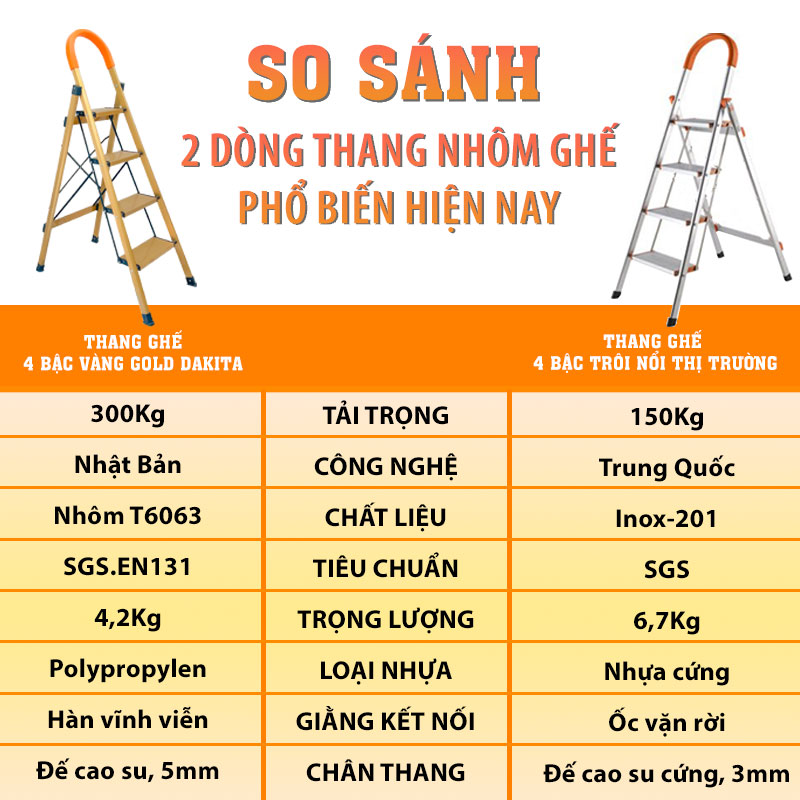Thang NHÔM VÀNG 5 bậc – chiều cao gấp gọn: 1,99 cm – Chiều rộng gấp gọn 60cm