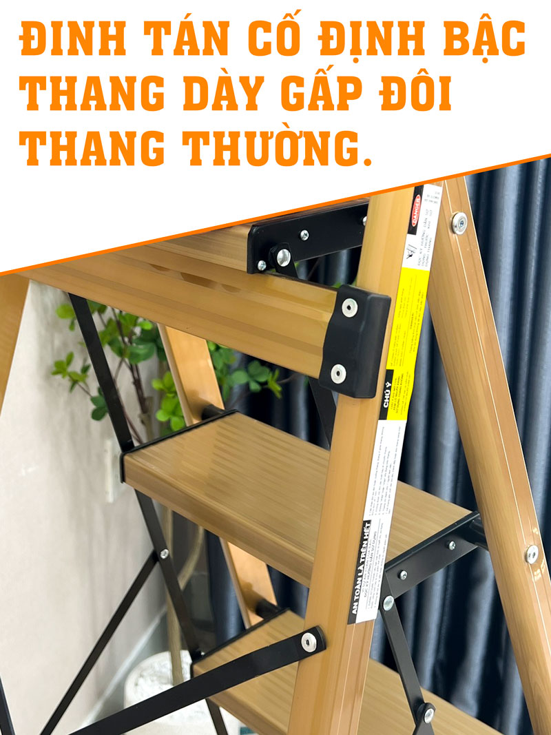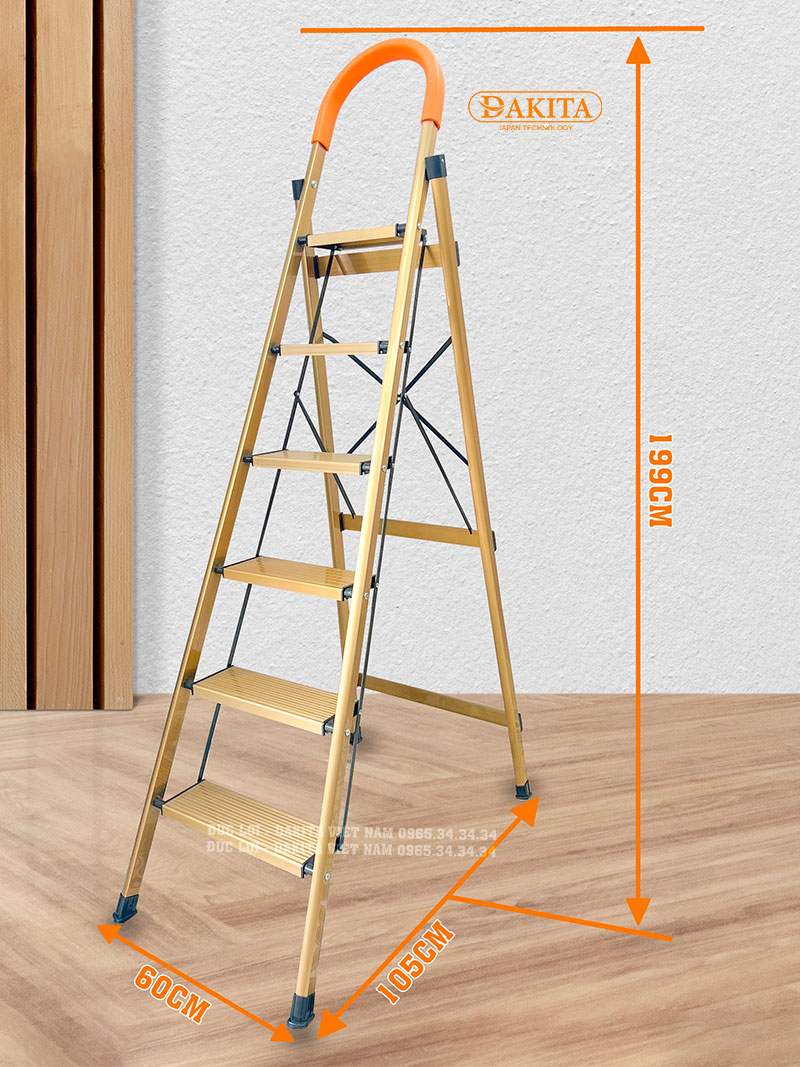 Thang NHÔM VÀNG 6 bậc – chiều cao gấp gọn: 1,99 cm – Chiều rộng gấp gọn 60cm