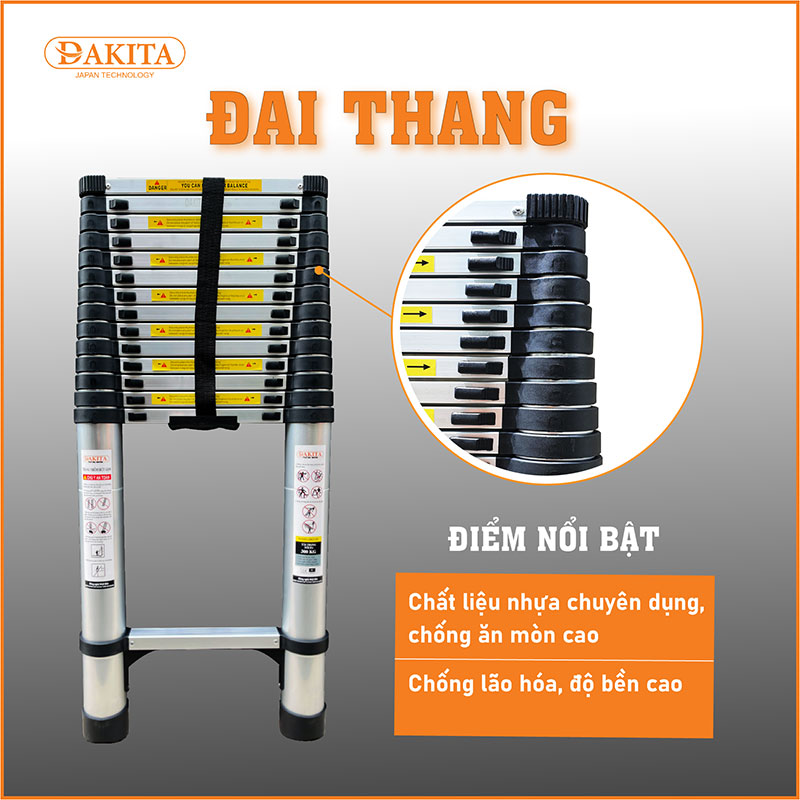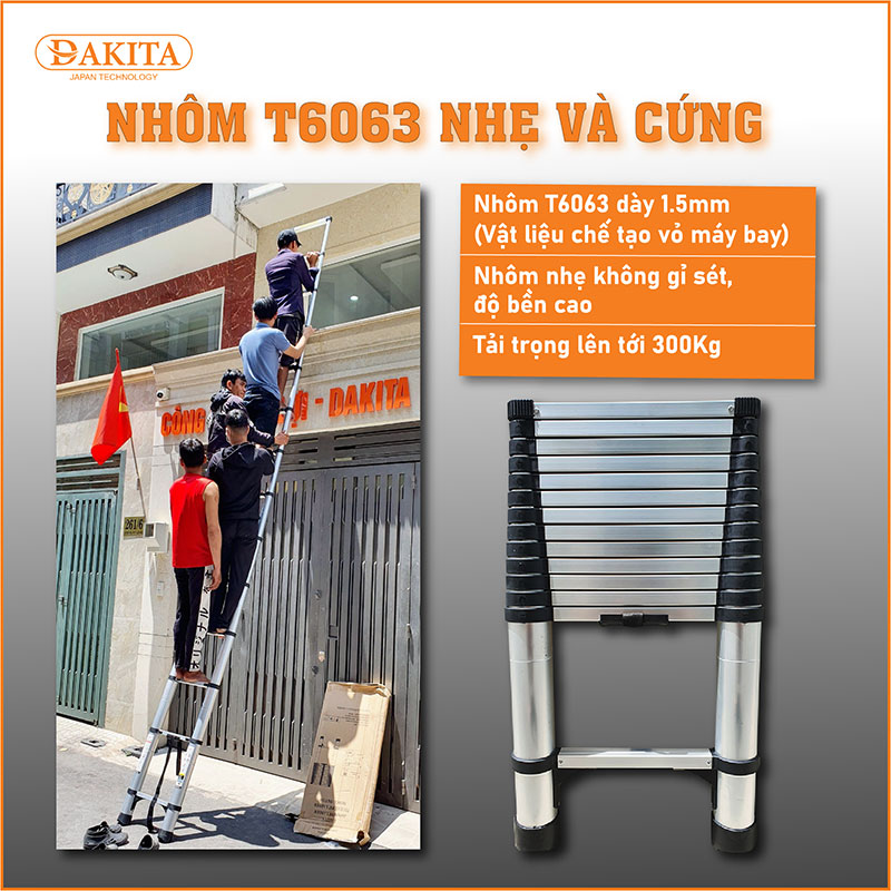 THANG NHÔM RÚT GỌN DAKITA DKT-132 CHÍNH HÃNG - THANG TỐT - GỌN - NHẸ - XÀI BỀN.