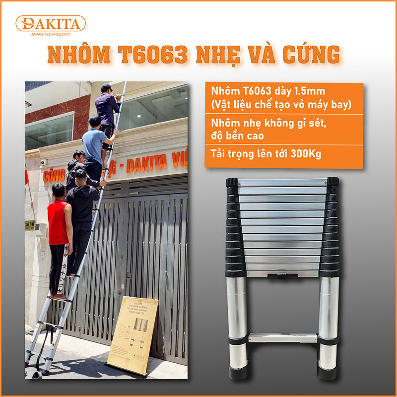 THANG NHÔM RÚT GỌN DAKITA DKT-154 CHÍNH HÃNG - THANG TỐT - GỌN - NHẸ - XÀI BỀN.