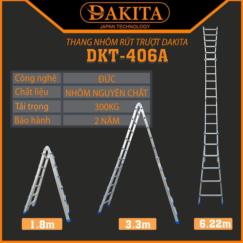 + Thang nhôm trượt chữ A DAKITA DKT-406A có thể dễ dàng phục vụ cho nhiều mục đích sử dụng khác nhau cho chiều cao từ 1.2m - 6m