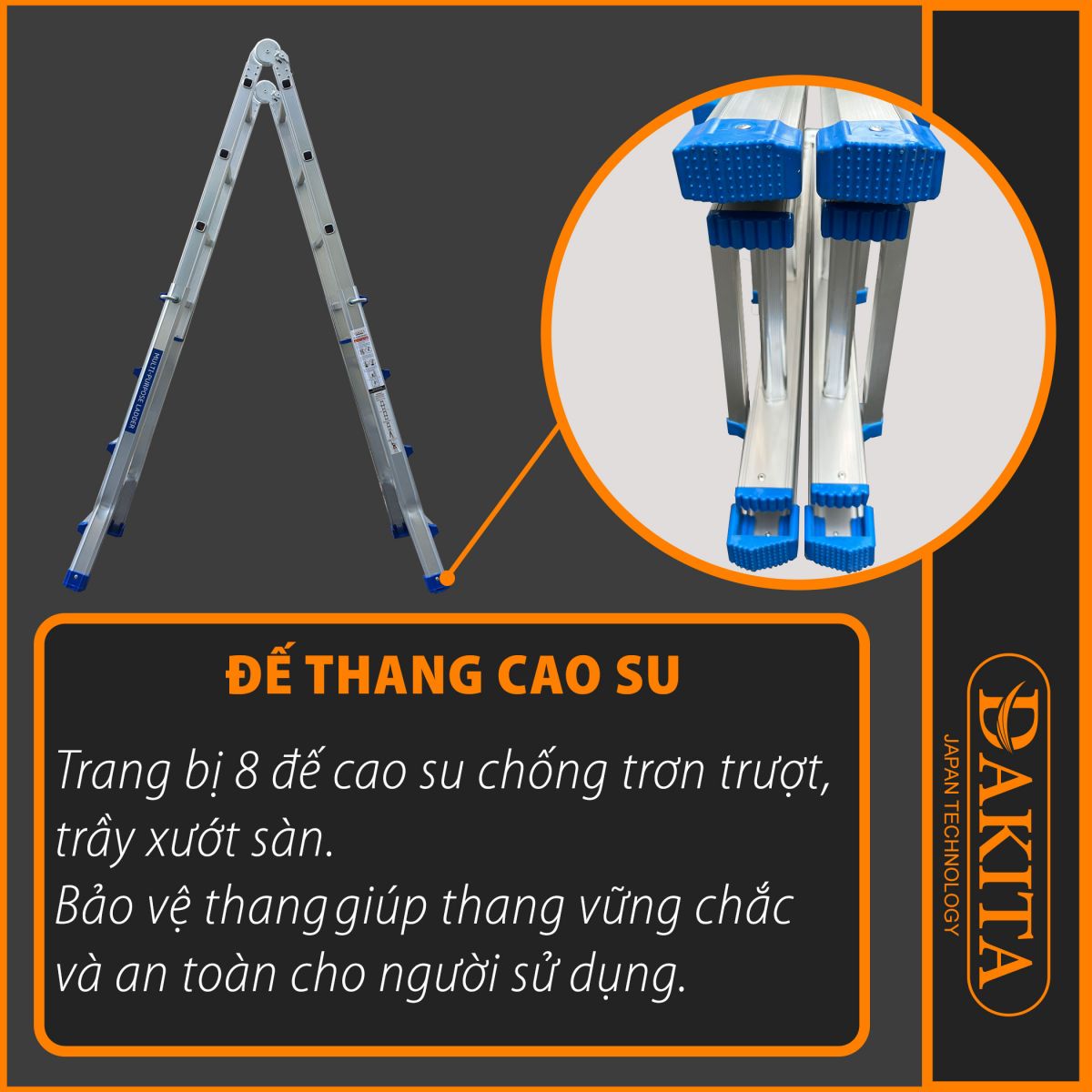 + Chân thang nhôm được trang bị đế cao su chống trượt mang đến sự an toàn tuyệt đối khi sử dụng.
