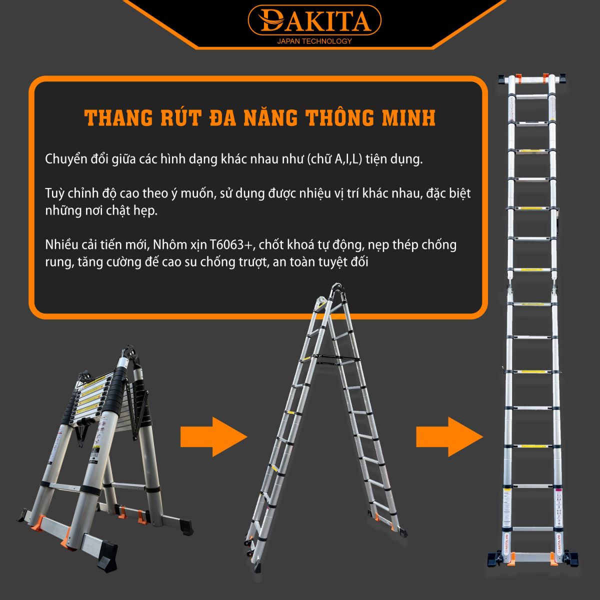 + Thang nhôm rút đôi DKT-264 thích hợp dùng sửa mái nhà, sửa bóng điện, lau rèm, dùng cho thợ điện lạnh, lắp camera, dùng hái trái cây, dùng tại những nơi chật hẹp.