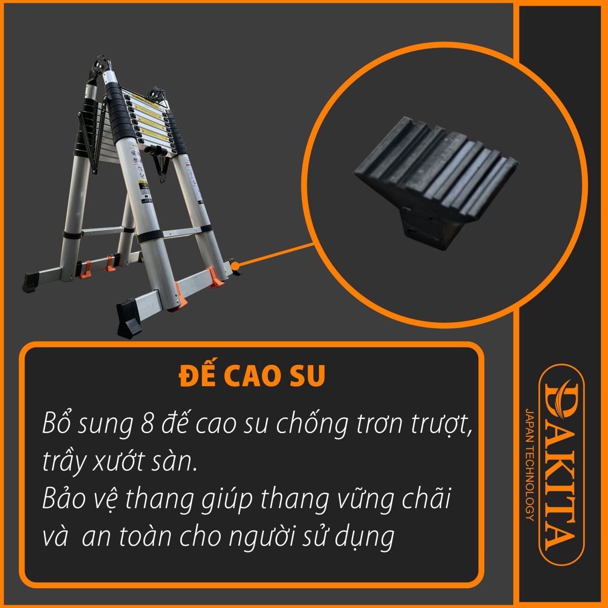 + Được lắp đặt tới 8 đế chống trơn trượt (gấp đôi so với thông thường), giúp chân thang có độ bám cao hơn, đảm bảo an toàn cho người sử dụng.