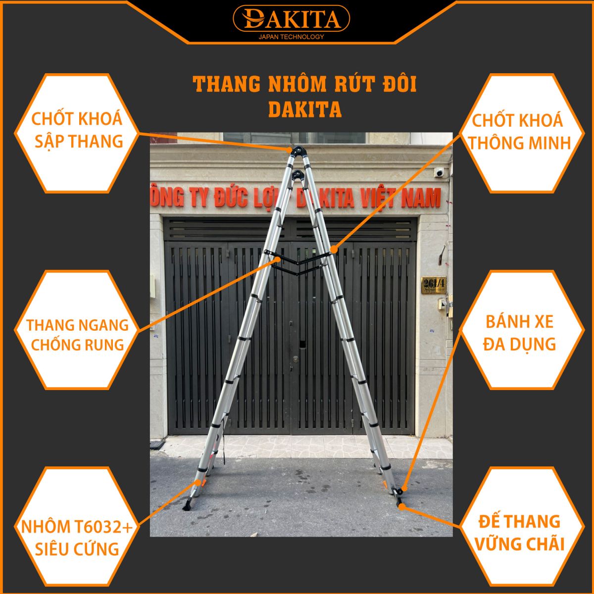 + Ống nối giữa của thang lên tới 16cm (gấp đôi so với thang thông thường), giúp tăng sự chắc chắnvà đảm bảo an toàn cho người sử dụng.