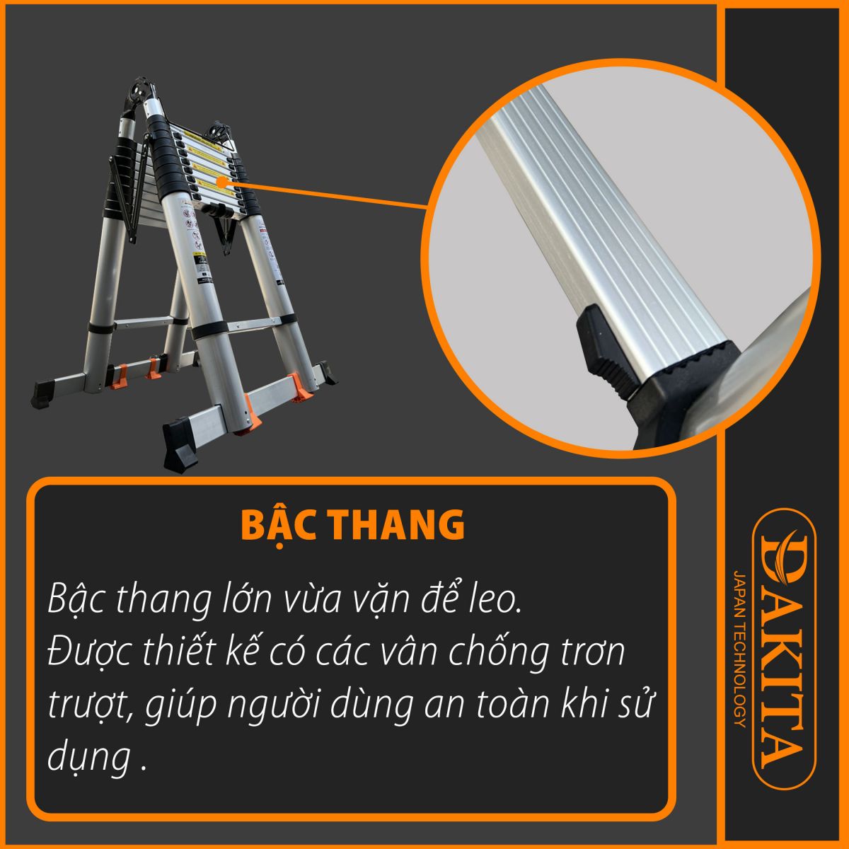 + Ống nối giữa của thang lên tới 16cm (gấp đôi so với thang thông thường), giúp tăng sự chắc chắnvà đảm bảo an toàn cho người sử dụng.