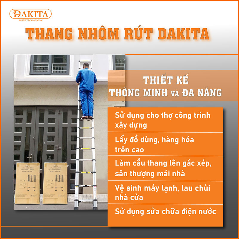 THANG NHÔM RÚT GỌN DAKITA DKT-158 CHÍNH HÃNG - THANG TỐT - GỌN - NHẸ - XÀI BỀN.