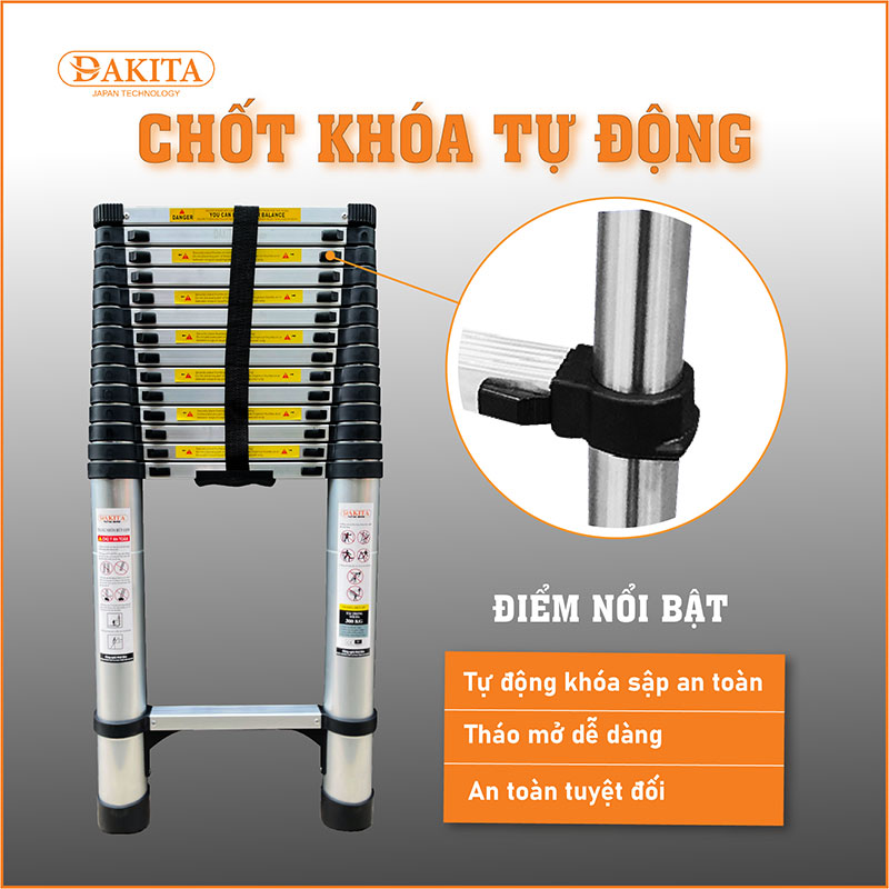 THANG NHÔM RÚT GỌN DAKITA DKT-170 CHÍNH HÃNG - THANG TỐT - GỌN - NHẸ - XÀI BỀN.